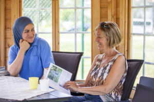medarbetare-och-boende-pa-bjorkgarden-laser-bok-och-skrattar